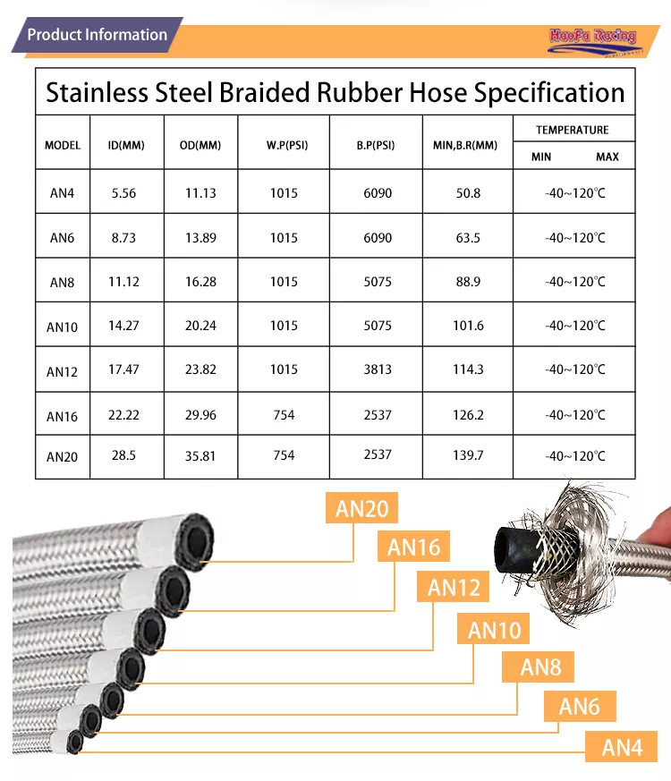 Haofa AN fitting hydraulic rubber hose flexible black fuel pump hose wire S.S braided pipe oil pumping hose